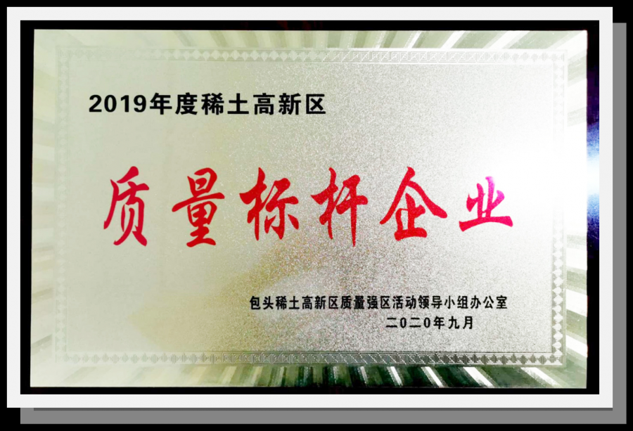 9月15日,包頭市稀土高新區2020年質(zhì)量大會(huì )在稀土大廈召開(kāi)。會(huì )上包頭市稀土高新區質(zhì)量強區活動(dòng)領(lǐng)導小組對2019年全區質(zhì)量工作先進(jìn)單位、質(zhì)量標桿企業(yè)和先進(jìn)個(gè)人予以表彰。東寶生物獲得“2019年度 質(zhì)量標桿企業(yè)”榮譽(yù)稱(chēng)號。
